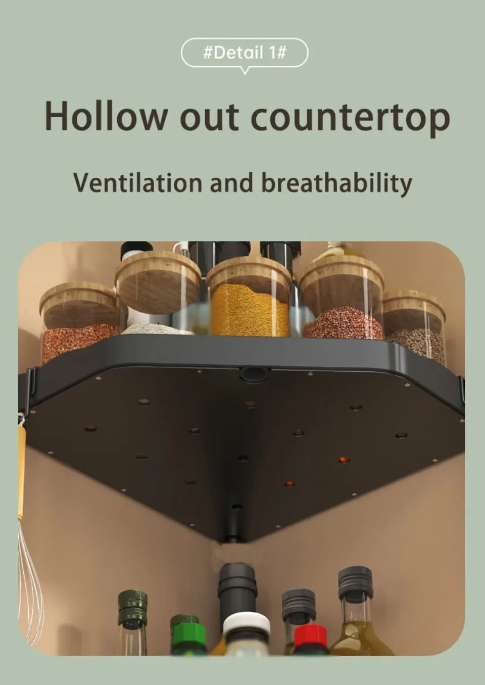 Maximise your kitchen space with this multifunctional Kitchen Seasoning Shelf. Designed with a sturdy carbon steel base and ABS plastic edges, this clever corner stand offers three spacious tiers to store your spices, condiments, and utensils neatly in one spot. Its partitioned storage keeps everything within easy reach while the curtain-style cover adds a clean, modern touch.
